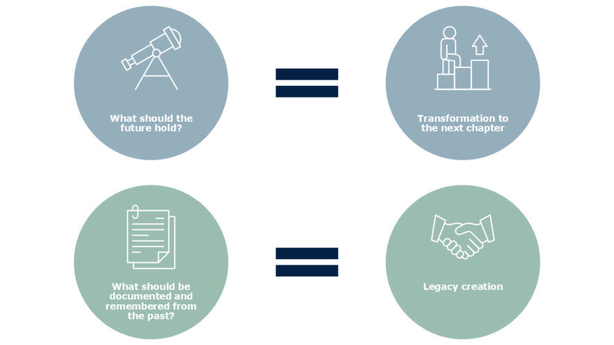 Beyond planning for the future, the transformation process can—and perhaps should—also include documenting and shaping your legacy. This documentation is not only for the next stage gen’s own sake but also for their descendants, who may benefit from understanding how the business or fortune was created.